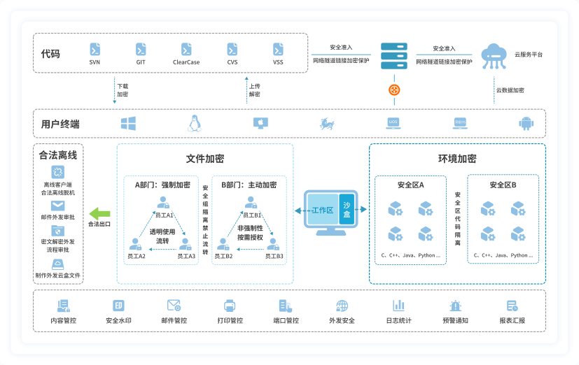 透明无感知加密:对机密数据自动加密,对用户透明。不影响用户使用习惯;